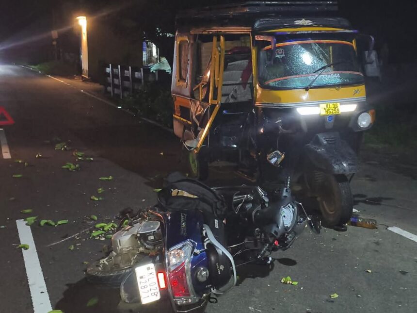കോതമംഗലത്തിന് സമീപം ഊഞ്ഞാപ്പാറയിൽ സ്കൂട്ടറിൽ ഓട്ടോയിടിച്ചുണ്ടായ അപകടത്തിൽ ഒരാൾ മരിച്ചു. പൂയംകുട്ടി, മണികണ്ഠൻചാലിൽ താമസിക്കുന്ന സന്തോഷ് ആണ് മരിച്ചത്.