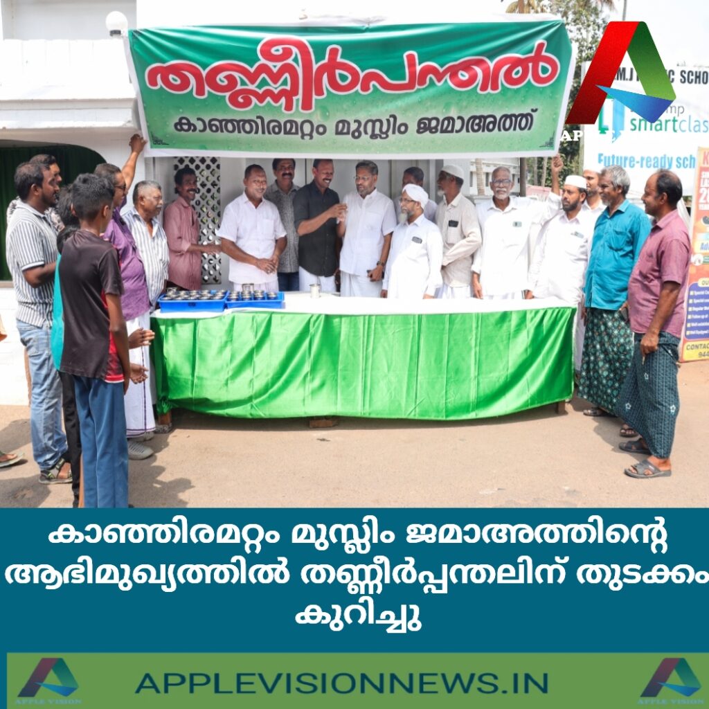 കഠിനമായി കൊണ്ടിരിക്കുന്ന ചൂടിൽ പൊതുജനങ്ങൾക്ക് ആശ്വാസമേകുന്നതിന് വേണ്ടി കാഞ്ഞിരമറ്റം മുസ്ലിം ജമാഅത്തിന്റെ അഭിമുഖ്യത്തിൽ കാഞ്ഞിരമറ്റം ജുമാ മസ്ജിദിന്ന്മുൻവശം തണ്ണീർപന്തൽകാഞ്ഞിര മറ്റംമുസ്ലിം ജമാഅത്ത് പ്രസിഡണ്ട് അബ്ദുസ്സലാം ഇട വട്ടത്തിന്റെ സാന്നിധ്യത്തിൽആമ്പല്ലൂർ ഗ്രാമപഞ്ചായത്ത് പ്രസിഡണ്ട്കെജി രഞ്ജിത്ത് തുടക്കം കുറിച്ചുചൂട് അധികരിച്ചിരിക്കുന്ന ഈ കാലാവസ്ഥയിൽ സമൂഹത്തിന് ചെയ്യുന്ന ഏറ്റവും മഹത്തായപ്രവർത്തിയാണ്കാഞ്ഞിരമറ്റം മുസ്ലിം ജമാഅത്ത് ഇന്ന് തുടക്കം കുറിച്ച ഈ തണ്ണീർപ്പന്തൽ എന്ന് ഗ്രാമപഞ്ചായത്ത് പ്രസിഡണ്ട് പറഞ്ഞു ചടങ്ങിൽ പങ്കെടുത്ത ബ്ലോക്ക് പഞ്ചായത്ത് പ്രസിഡണ്ട് സി ആർ ദിലീപ് കുമാർസമൂഹത്തിനുവേണ്ടി ചെയ്യുന്ന ഏറ്റവും നന്മയായ പ്രവർത്തിയാണ് ഈ തണ്ണീർ പന്തൽഎന്ന് അഭിപ്രായപ്പെട്ടുചടങ്ങിൽ പങ്കെടുത്ത കാഞ്ഞിരമറ്റം പള്ളി ഇമാം അൻസാരി ബാഖവികാഞ്ഞിരമറ്റം ജമാഅത്ത് ഏറ്റവും പുണ്യമായ പ്രവർത്തിക്കാണ് ഈ തണ്ണീർപ്പന്തൽ ആരംഭിച്ചുകൊണ്ട് തുടക്കം കുറിച്ചിരിക്കുന്നത് എന്ന് പറഞ്ഞുഗ്രാമപഞ്ചായത്ത് അംഗം സലിം അലിചൂട് കഠിനമായിരിക്കുന്ന ഈ സാഹചര്യത്തിൽതണ്ണീർപ്പന്തൽതുടങ്ങിയതിന്എല്ലാവിധ ആശംസകളും അഭിനന്ദനങ്ങ അറിയിച്ചുകാഞ്ഞിരമറ്റം മുസ്ലിം ജമാഅത്ത്സെക്രട്ടറി ശിഹാബ് കോട്ടയിൽ സ്വാഗതം ആശംസിച്ചുകാഞ്ഞിരമറ്റം പള്ളി സ്റ്റാൻഡിങ് കമ്മിറ്റി മെമ്പർമാരായവി പി ലത്തീഫ് വടക്കേപീടികയിൽഅസീസ് കൊച്ചു കിഴക്കേതിൽസൂപ്പി കളത്തിപ്പടിഅജ്മൽ വാലുമ്മൽജമാഅത്ത് ജോയിൻ സെക്രട്ടറി റഫീക്ക് മൊഴിയിൽട്രഷറർ നിസാർ കുന്നംകുളത്തിൽഅനസ് ആമ്പല്ലൂർഷിജാസ് പള്ളിയന്ത ട ഠറഷീദ് ബാഖവി ജാഫർ ഫൈസികമ്മറ്റി അംഗങ്ങൾ മഹൽ അംഗങ്ങൾമറ്റു പൊതുജനങ്ങൾ തുടങ്ങിയവർ പങ്കെടുത്തുതണ്ണീർപ്പന്തലിന് തുടക്ക ദിവസമായി ഇന്ന് തന്നെ നൂറുകണക്കിന് പൊതുജനങ്ങൾ ഇത് പ്രയോജനപ്പെടുത്തി