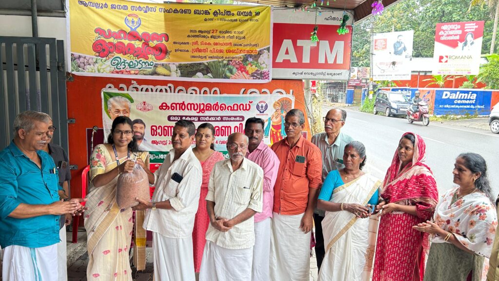 കൺസ്യുമർ ഫെഡിന്റെ നേതൃത്വത്തിലുള്ള സഹകരണ ഓണച്ചന്തയുടെ ഉദ്ഘാടനവും ആദ്യ വില്പനയും കണയന്നൂർ അസിസ്റ്റന്റ് രജിസ്ട്രാർ(ജനറൽ) ശബ്ന പി.ജെ നിർവഹിച്ചു. യോഗത്തിൽ ആമ്പല്ലൂർ ജനത സർവ്വീസ് സഹകരണ ബാങ്ക് പ്രസിഡന്റ് ടി കെ മോഹനൻ അധ്യക്ഷനായി. ബാങ്കിന്റെ ഡയറക്ടർ ബോർഡ് അംഗം കെ. പത്മകുമാർ സ്വാഗതം പറഞ്ഞു. വാർഡ് മെമ്പർ എ.പി സുഭാഷ്, സെക്രട്ടറി പി. പി സീന എന്നിവർ സംസാരിച്ചു. ബാങ്കിന്റെ ഡയറക്ടർ ബോർഡ് അംഗങ്ങളായ രാജേന്ദ്രൻ സി.കെ, ദിവാകരൻ എൻ.സി, ദിലീപ് ഇ.വി, റെജീന ഷാമിൽ, മീരാ ഷാജി, ഷീല സത്യൻ, ബാങ്ക് ജീവനക്കാർ എന്നിവർ പങ്കുചേർന്നു. ബ്രാഞ്ച് മാനേജർ എം.ടി ധധീശൻ നന്ദി അറിയിച്ചു.