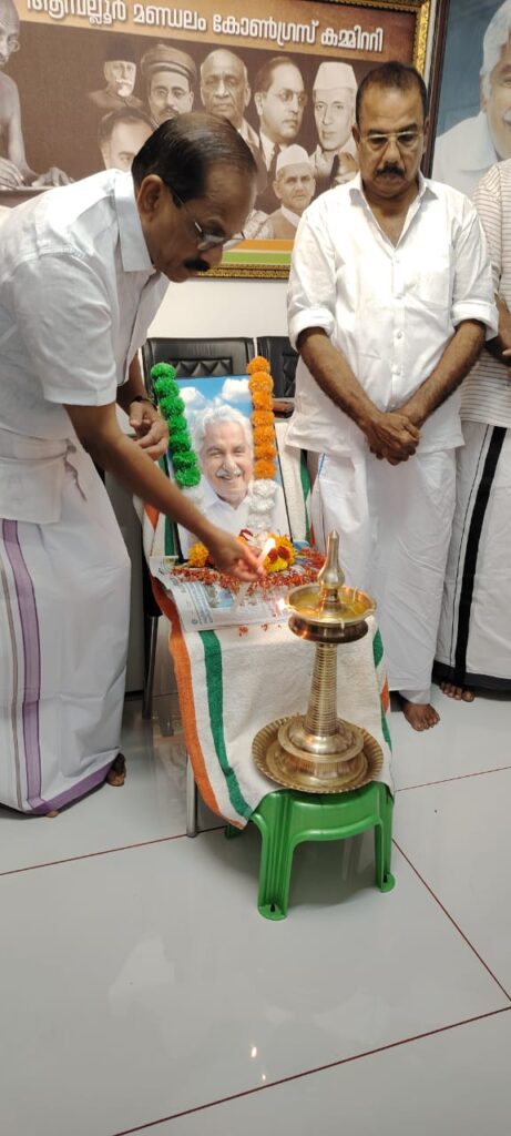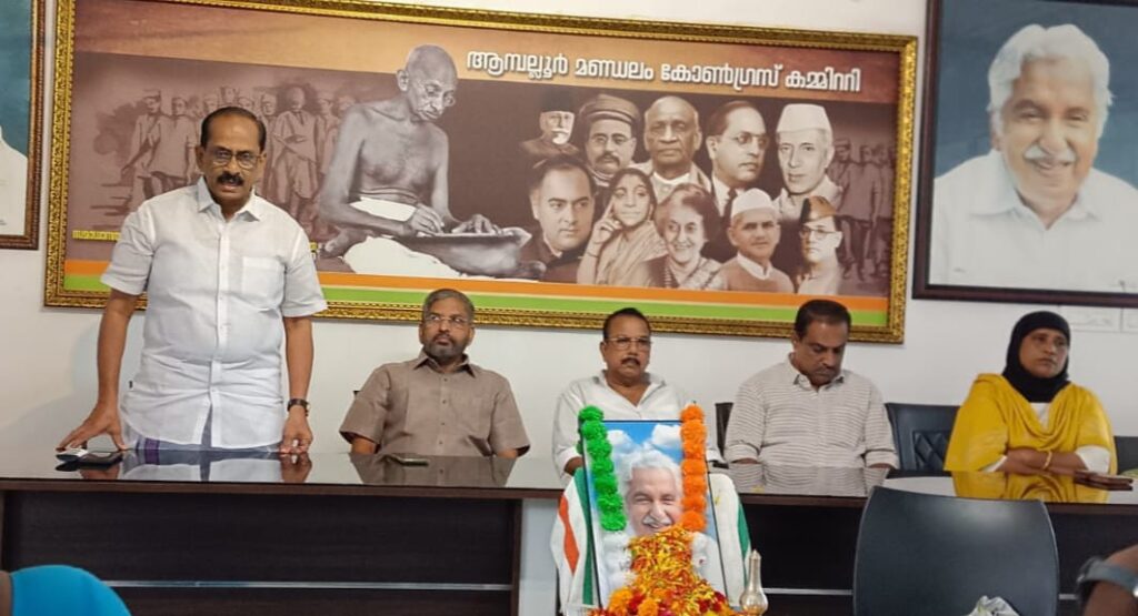 മുൻ മുഖ്യമന്ത്രി ഉമ്മൻ ചാണ്ടിയുടെ രണ്ടാം ചരമവാർഷിക ദിനാചരണം ആമ്പല്ലൂർ മണ്ഡലം കോൺഗ്രസ് കമ്മറ്റിയുടെ നേതൃത്വത്തിൽ സംഘടിപ്പിച്ചു. മണ്ഡലം പ്രസിഡണ്ട് സി.ആർ.ദിലീപ് കുമാർ അധ്യക്ഷത വഹിച്ച യോഗത്തിൽ ബ്ലോക്ക് കോൺഗ്രസ് പ്രസിഡണ്ട് ആർ.ഹരി ഉദ്ഘാടനം ചെയ്തു.കർഷക കോൺഗ്രസ് ജില്ലാ പ്രസിഡണ്ട് കെ.ജെ.ജോസഫ് അനുസ്മരണ പ്രഭാഷണം നടത്തി.ആമ്പല്ലൂർ ഗ്രാമപഞ്ചായത്ത് പ്രസിഡണ്ട് ബിജു തോമസ്, മഹിളാ കോൺഗ്രസ് സംസ്ഥാന സെക്രട്ടറി സൈബാ താജുദ്ദീൻ, ജില്ലാ സെക്രട്ടറി ലീലാ ഗോപാലൻ എന്നിവർ സംസാരിച്ചു.ഛായാചിത്രത്തിൽ പുഷ്പാർച്ചന പ്രാർത്ഥന എന്നിവയും നടന്നു.